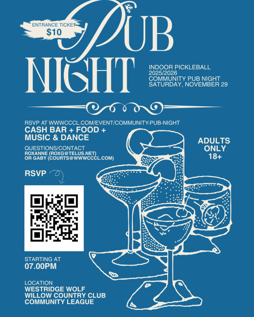 Kick off the weekend with a fun, adults-only evening at the Westridge Community Hall! Join your neighbours for great food, a cash bar, music, dancing, and a relaxed night out close to home.